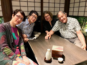 By 6 we said good bye and returned to our little apartment, organizing our belongings in order to carry as little as possible on the trek and send the suitcase on to Tokyo.  It has been our good fortune to be in the Oyama's apartment, and we feel we could almost settle into our life again in Kyoto!
